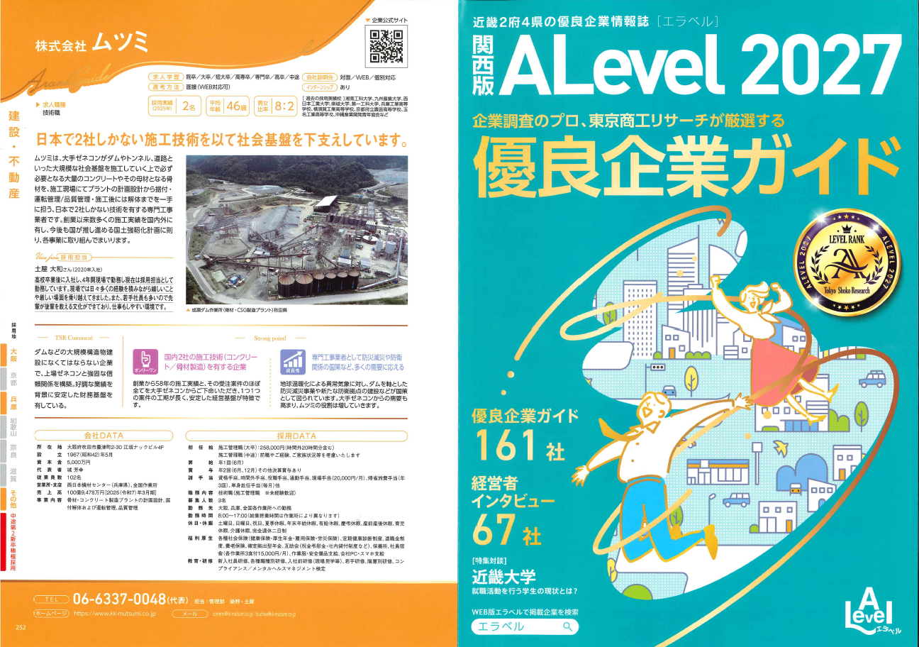 2025年12月22日 優良企業情報誌ALevel2027に掲載されました この度、信用調査会社の(株)東京商工リサーチ社様が発行する優良企業情報誌ALevel2027に弊社ムツミが上位8%に厳選されたAランク優良企業として本年も掲載されました。